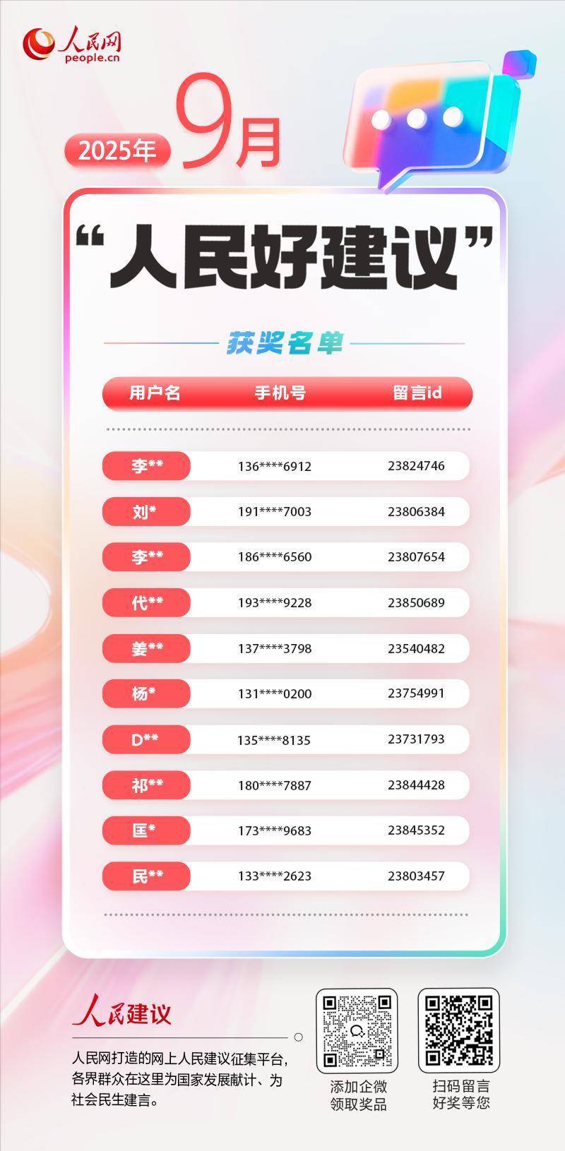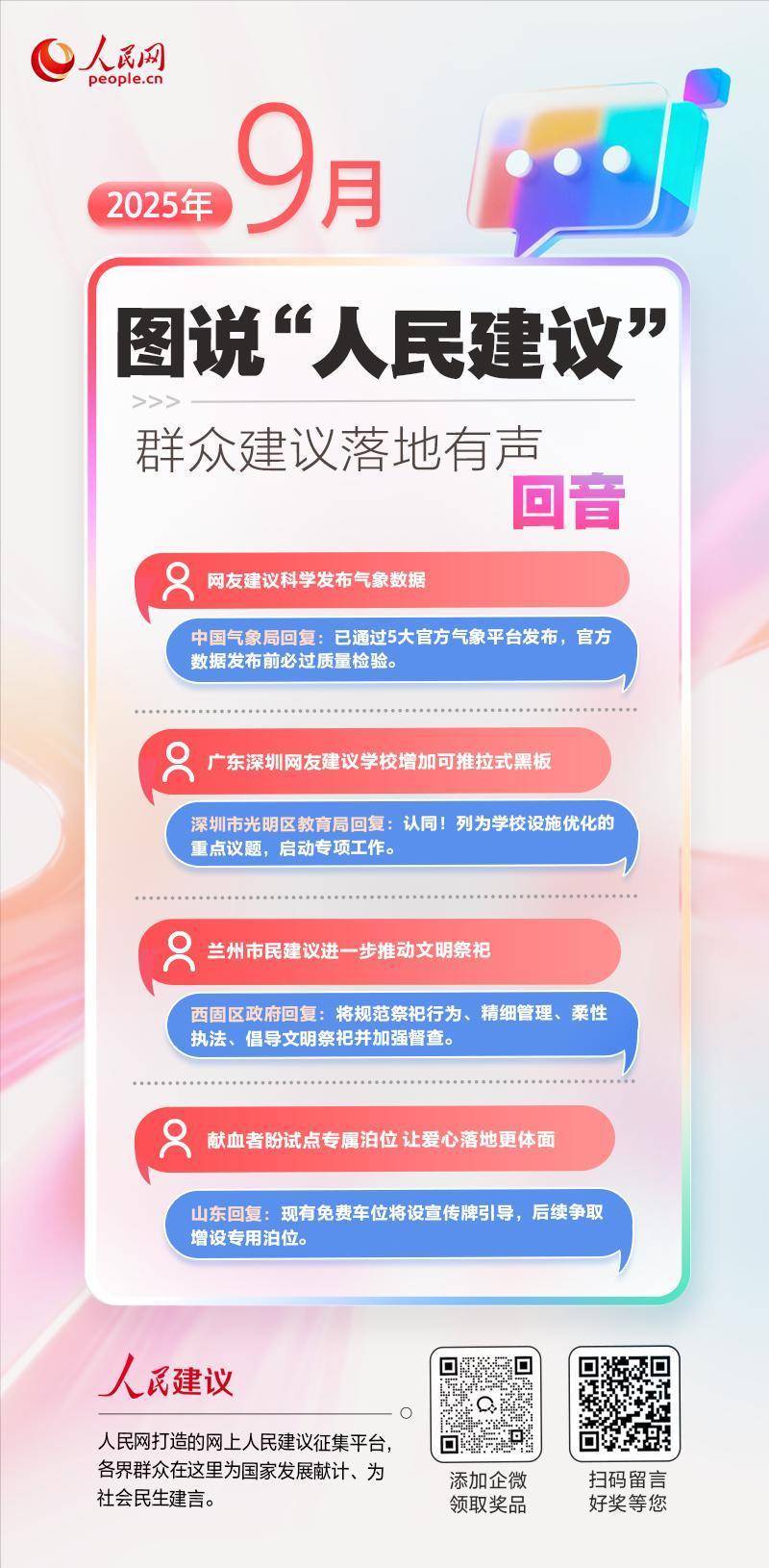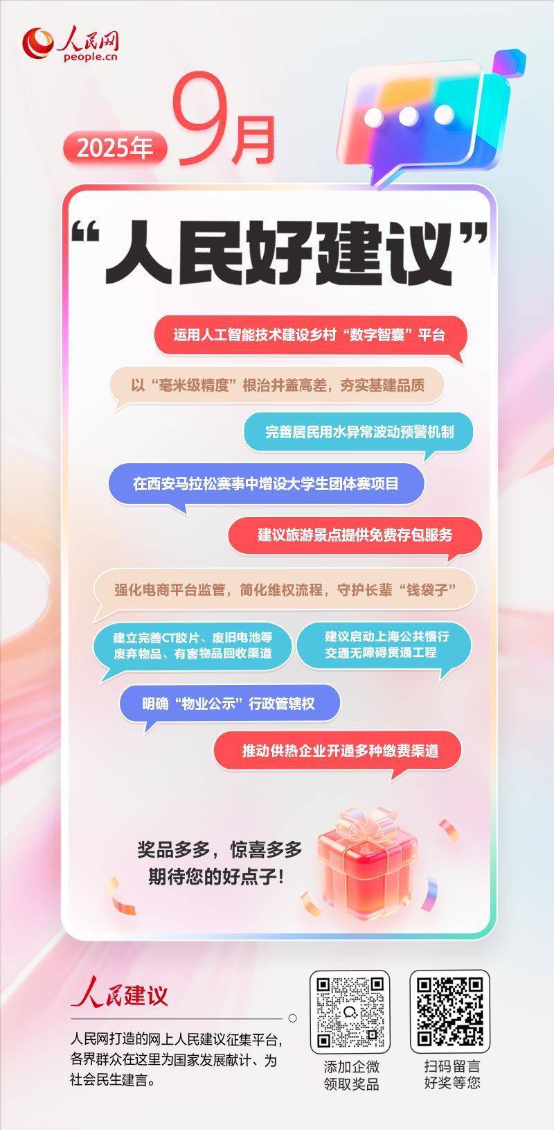 我们每月都会评选“人民好建议”奖