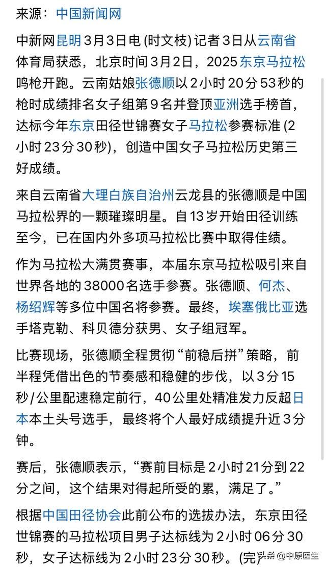 最新信息,在2025宜昌马拉松比赛上,“最快女护士”张水华夺得全马女子组冠军,官方公布张水华的最终成绩为2小时35分41秒,奖金1.5万,美元。